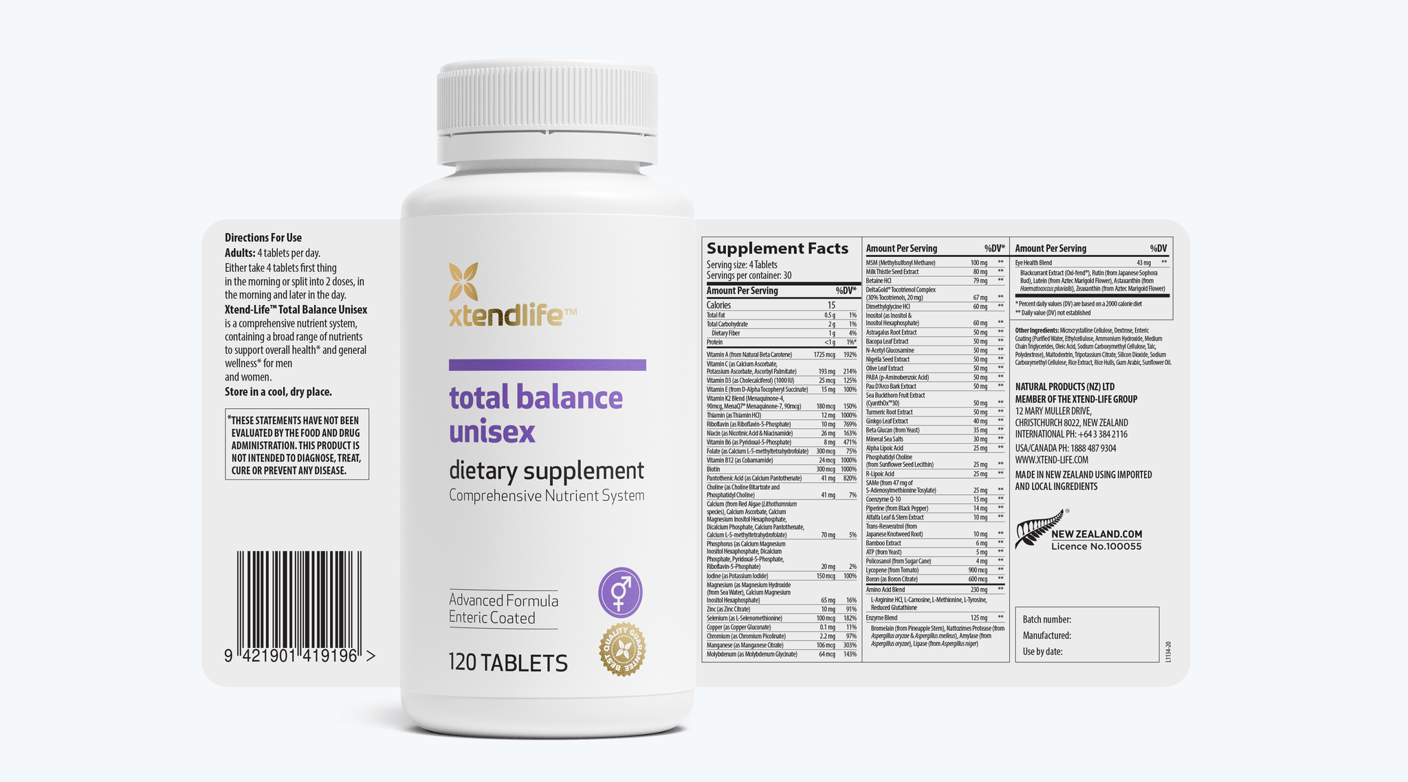 Total Balance - a holistic nutrient system bottled with care. See the full ingredient list on the label.